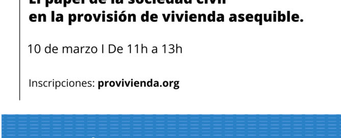 Provivienda celebra, el jueves 10 de marzo de 11 a 13 horas, el webinar “El papel de la sociedad civil en la provisión de vivienda asequible”. ¡Te esperamos!