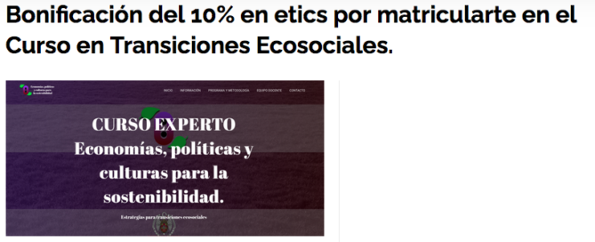 Desde el Mercado Social de Madrid / REAS Madrid ofrecemos una bonificación del 10% en etics (130 etics) a todas aquellas socias consumidoras de Mercado Social de Madrid o personas pertenecientes a organizaciones socias de la red que se matriculen en este Curso