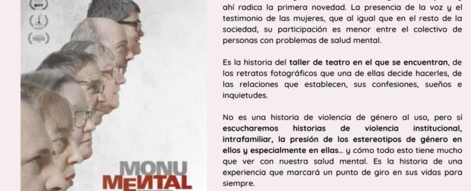 La historia de siete personas diagnosticadas con trastorno mental grave, tres hombres y cuatro mujeres, y ahí radica la primera novedad. La presencia de la voz y el testimonio de las mujeres, que al igual que en el resto de la sociedad, su participación es menor