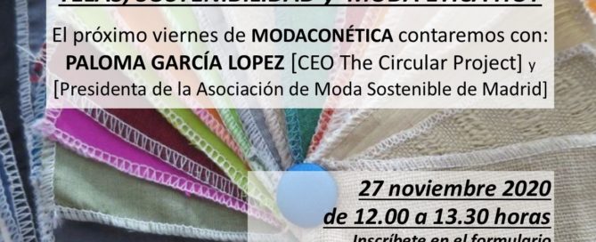 Hoy más que nunca, la Moda Sostenible. ¿Qué telas existen y se están produciendo?, ¿cómo crecer en el sector? El próximo viernes con Paloma García López (CEO The Circular Project)