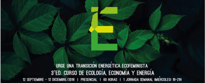 Un año más lanzamos, ecooo revolución solar, Ecologistas en Acción y ATTAC, el “Curso 3E – Ecología, Economía y Energía”. En esta tercera edición abordamos la urgencia de transitar hacia un nuevo modelo ecosocial y económico centrado en las propuestas ecofeministas, priorizando el mantenimiento y sostenimiento de la vida y situando ésta en el centro de [...]