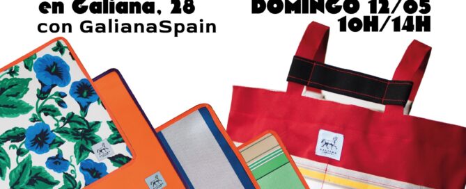 DOMINGO DE COSTURA EN GALIANA: Cuatro horas dedicadas a la creación de una pieza única, diseñada y confeccionada a partir de los residuos textiles provenientes de distintas fábricas de toldo de Madrid, un tejido que recuperamos y transformamos desde Galiana.