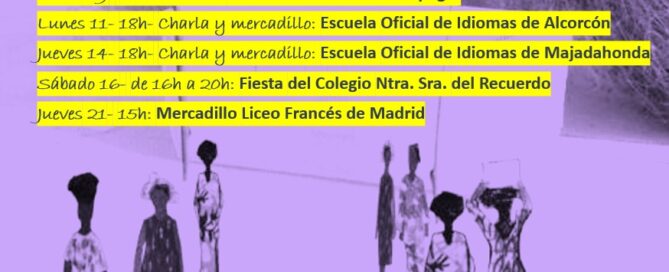 Este mes de marzo, estaremos en el mercadillo solidario de Galapagar, vamos a dar charlas en francés en las escuelas oficiales de idiomas sobre nuestro proyecto de empoderamiento de mujeres en Benín. Os esperamos en nuestra tienda en Madrid y on-line!